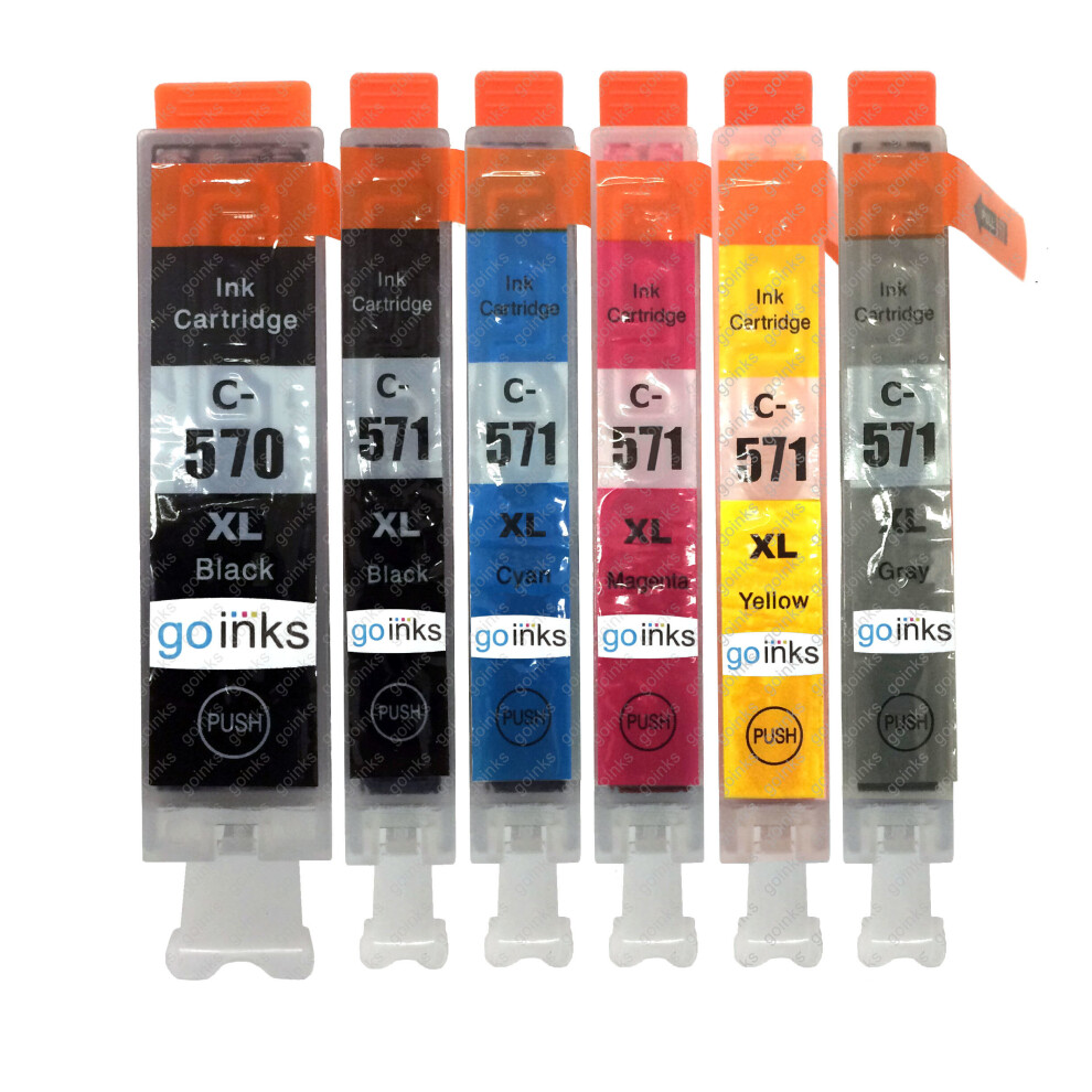 Compatible 1 Go Inks Set of 6 Ink Cartridges to replace Canon PGI-570 & CLI-571 / non-OEM for PIXMA Printers (6 Pack)