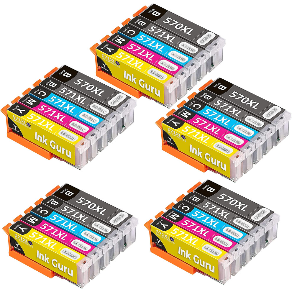 Compatible 4 Go Inks Set of 5 Ink Cartridges to replace Canon PGI-570 & CLI-571 / non-OEM for PIXMA Printers (20 Pack)