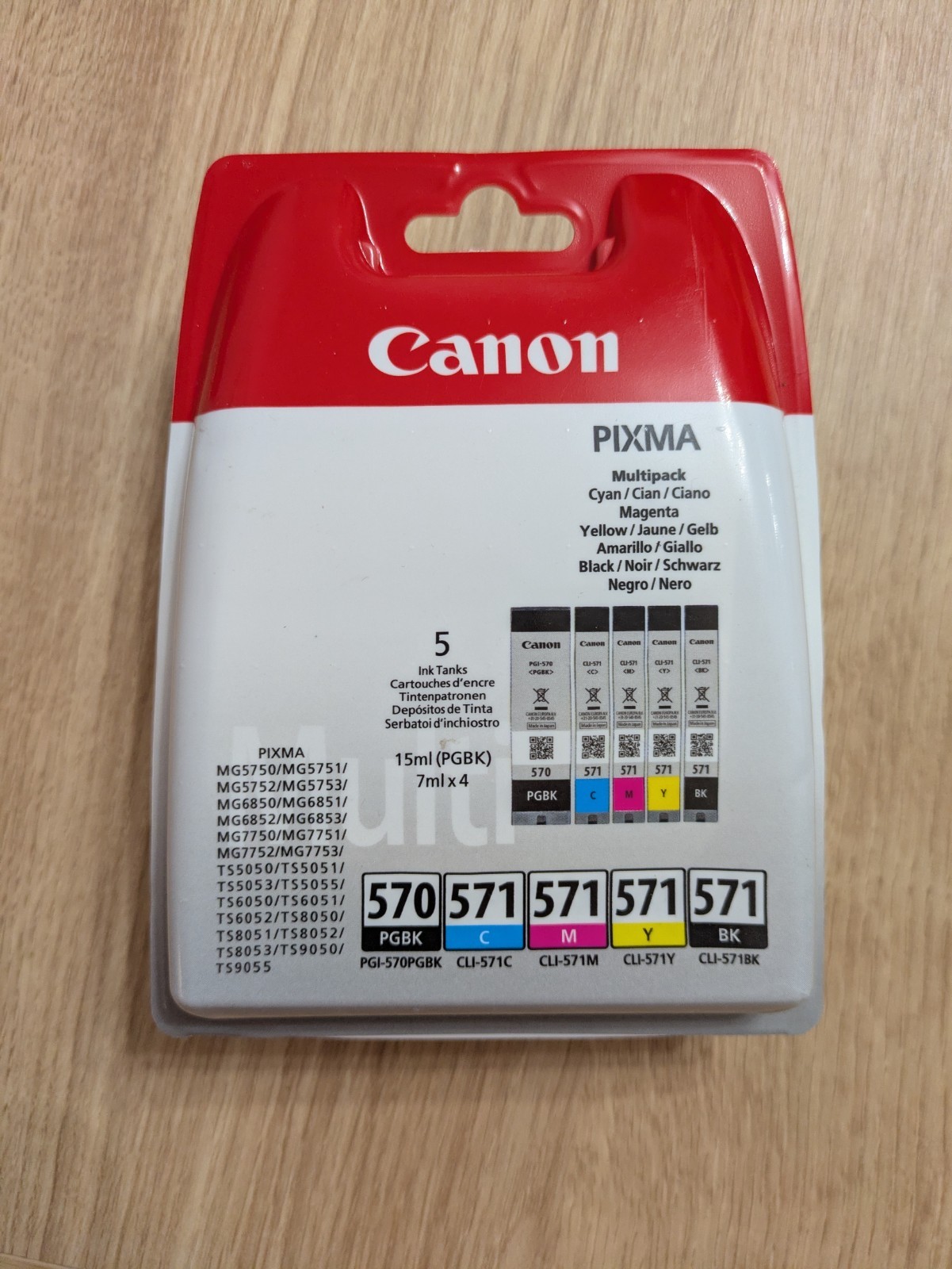 Canon CLI-571C/M/Y/BK (Cyan/Magenta/Gul/Black) + PGI-570PGBK XL (Pigment Black)