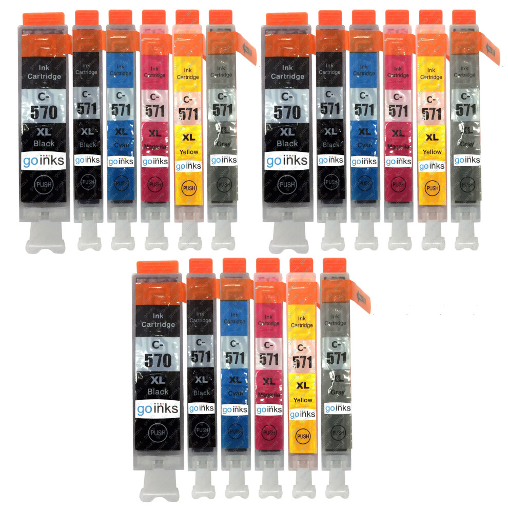 Compatible 3 Go Inks Set of 6 Ink Cartridges to replace Canon PGI-570 & CLI-571 / non-OEM for PIXMA Printers (18 Pack)