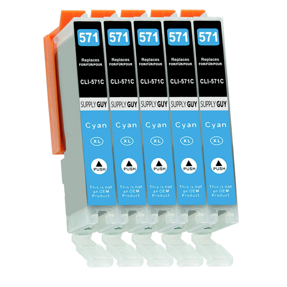 5 Ink cartridges with chip compatible with Canon CLI-571 Cyan for Canon Pixma MG5750 MG5751 MG6850 MG7750 TS5050 TS5055 TS6050 TS8050 TS9050 TS9055