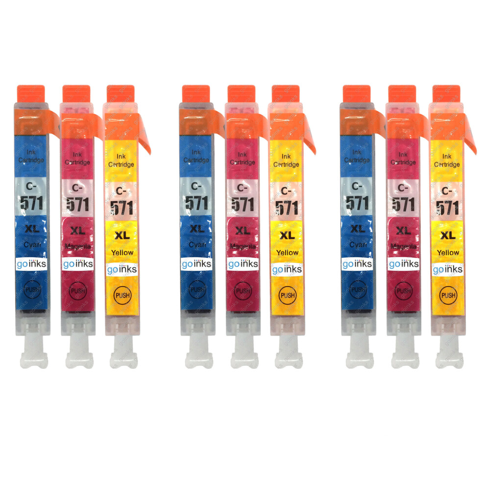Compatible 3 Go Inks C/M/Y Set of 3 Ink Cartridges to replce Canon CLI-571 / non-OEM for PIXMA Printers (9 Pack)
