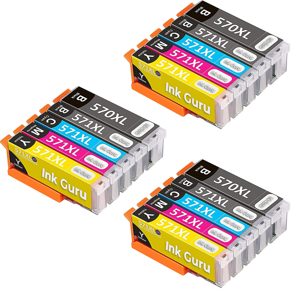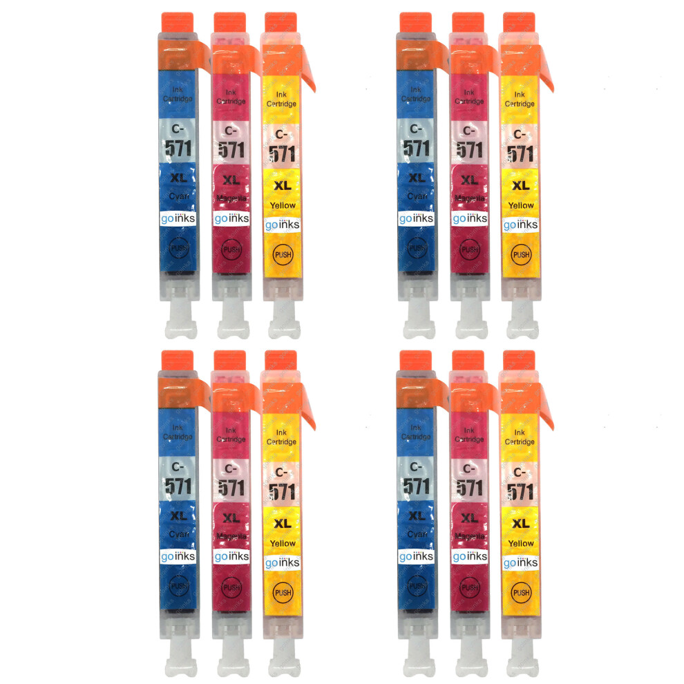 Compatible 4 Go Inks C/M/Y Set of 3 Ink Cartridges to replce Canon CLI-571 / non-OEM for PIXMA Printers (12 Pack)