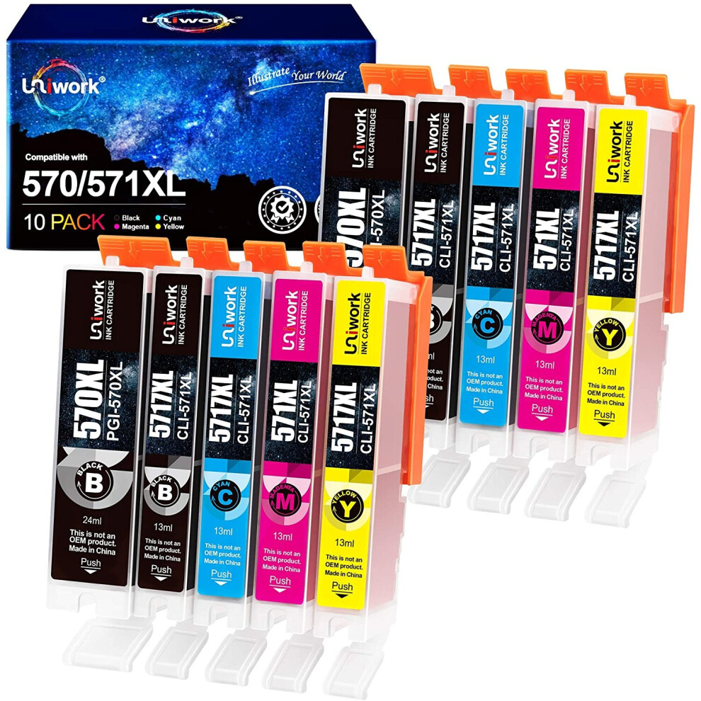 Compatible 10 Pack Uniwork Ink Cartridges for Canon PGI-570 CLI-571 XL for Canon PIXMA MG5750 MG5753 MG6852 TS5050 TS5051 TS6051 MG5751 MG6850 MG6853
