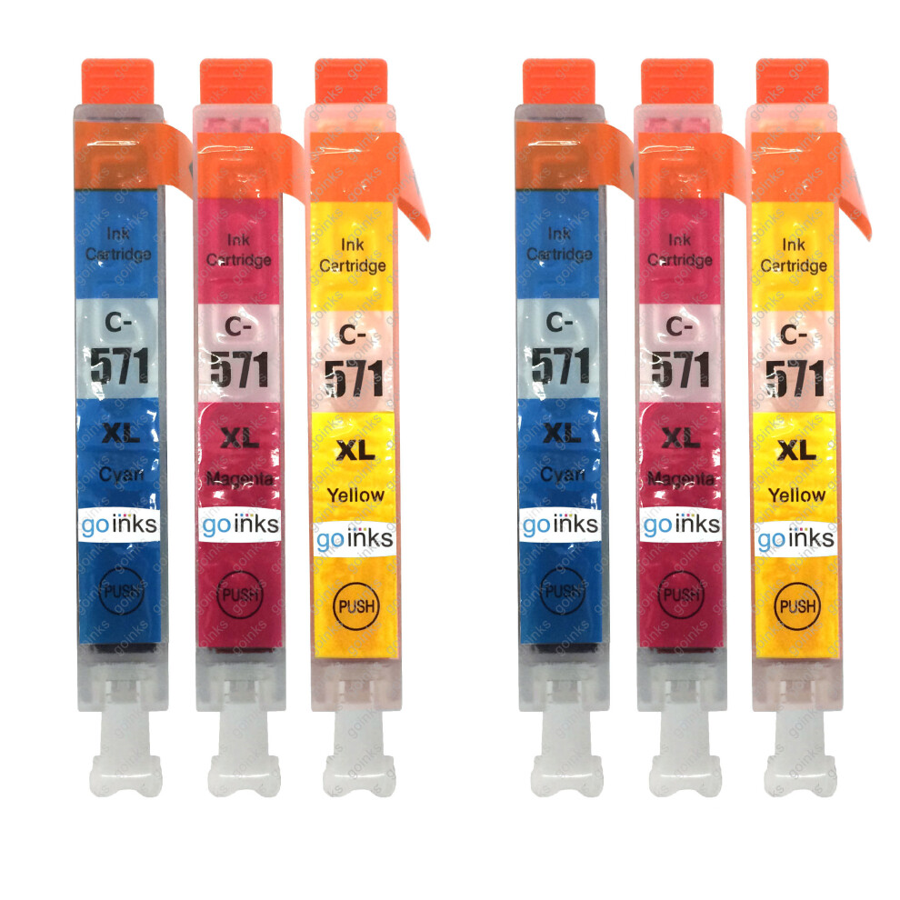 Compatible 2 Go Inks C/M/Y Set of 3 Ink Cartridges to replce Canon CLI-571 / non-OEM for PIXMA Printers (6 Pack)
