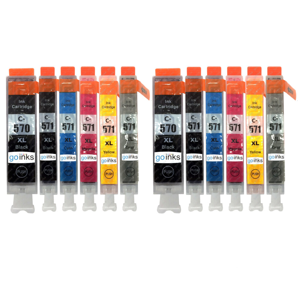 Compatible 2 Go Inks Set of 6 Ink Cartridges to replace Canon PGI-570 & CLI-571 / non-OEM for PIXMA Printers (12 Pack)