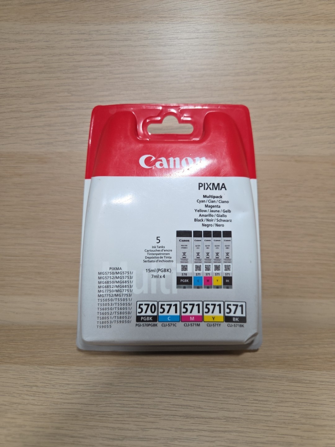 Canon CLI-571C/M/Y/BK (Cyan/Magenta/Gul/Black) + PGI-570PGBK (Pigment Black)