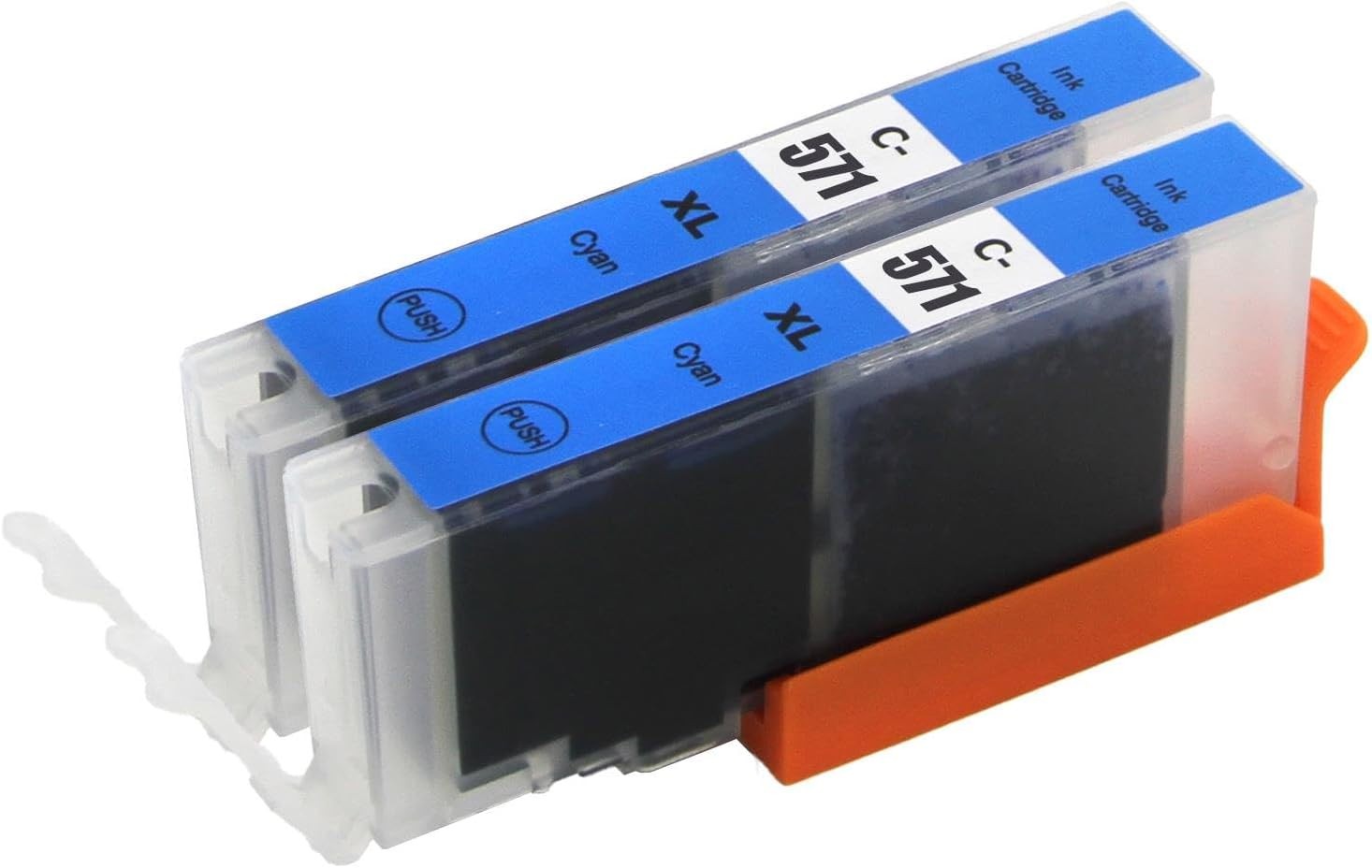 2 Cyan CLI-571C XL Compatible Ink Cartridges for use with Canon PIXMA Printers