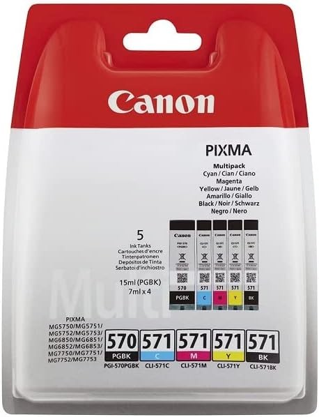 Canon CLI-571C/M/Y/BK (Cyan/Magenta/Gul/Black) + PGI-570PGBK (Pigment Black)