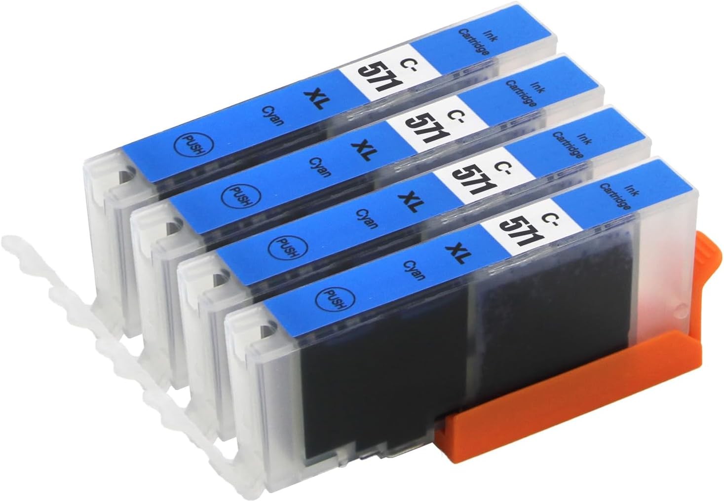 CLI-571C XL Compatible Cyan Ink Cartridges for Canon PIXMA Printers - 4 Pack