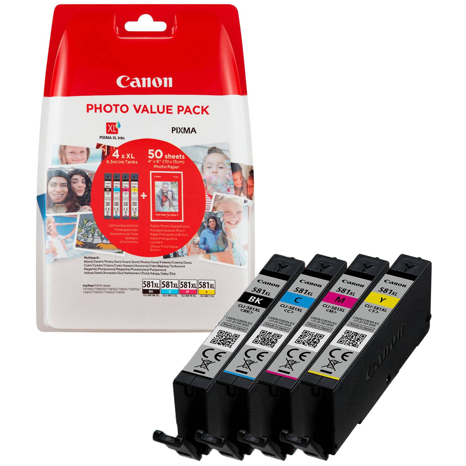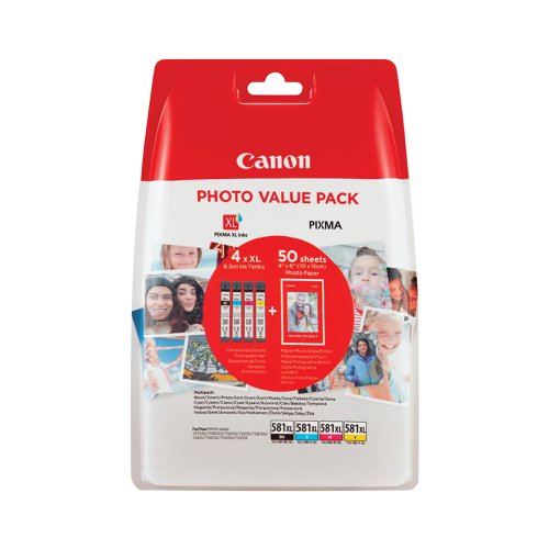 Canon CLI-581XL Inkjet Cartridges + Photo Paper Plus Glossy II CMYK