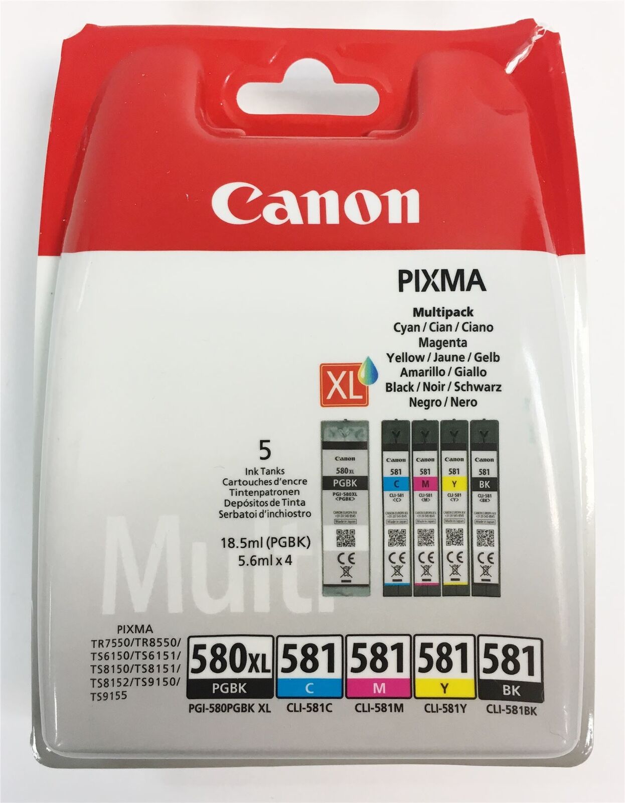 Canon PGI-580BK XL (Black) + CLI-581 (Black/Cyan/Magenta/Gul)
