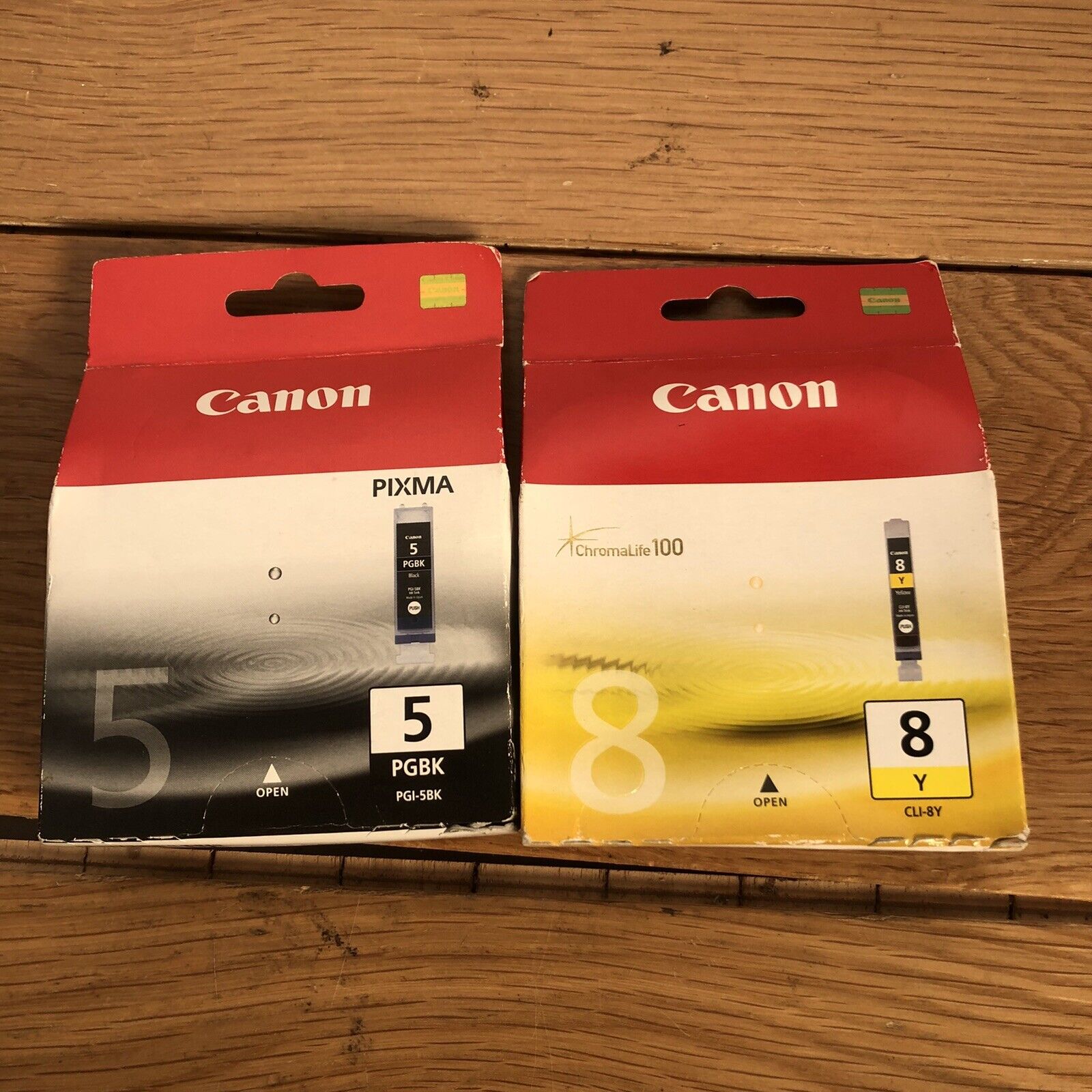 Canon PGI-5BK Ink Cartridge Black Plus 8 Canon Y Cli-8y Genuine Chromalife 100