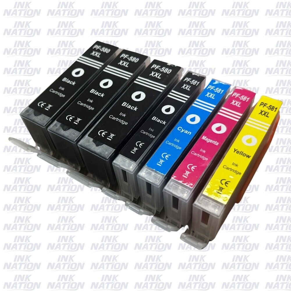 CLI581XXL PGI580XXL Set of 5 & 2x Extra Black Ink Cartridges for Canon TR7650