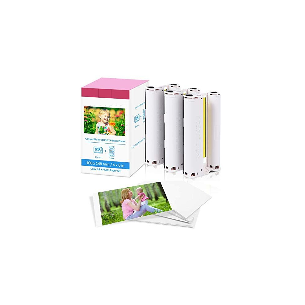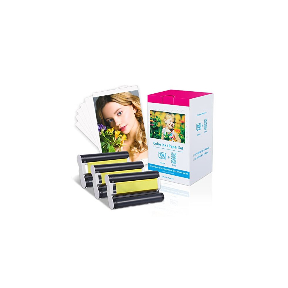 Compatible with Canon Selphy Series Ink and Paper, KP-108IN 3 Color Ink Cassette and 108 Sheets 4 x 6 Paper Glossy(100mm x148 mm) for Selphy CP1500 CP1300 CP1200 CP1000 CP910 CP900 CP810