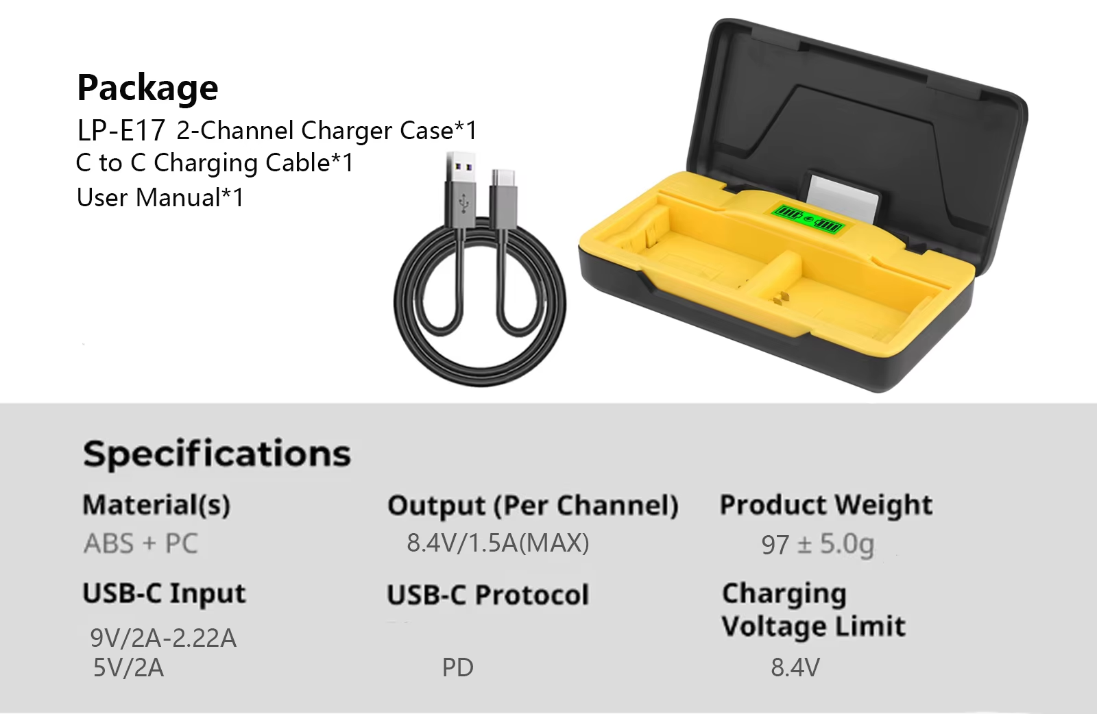 USBC Dual Slot Charger with LCD Display for Canon LPE10 and EOS Rebel T7 T6 T5 T3 4000D