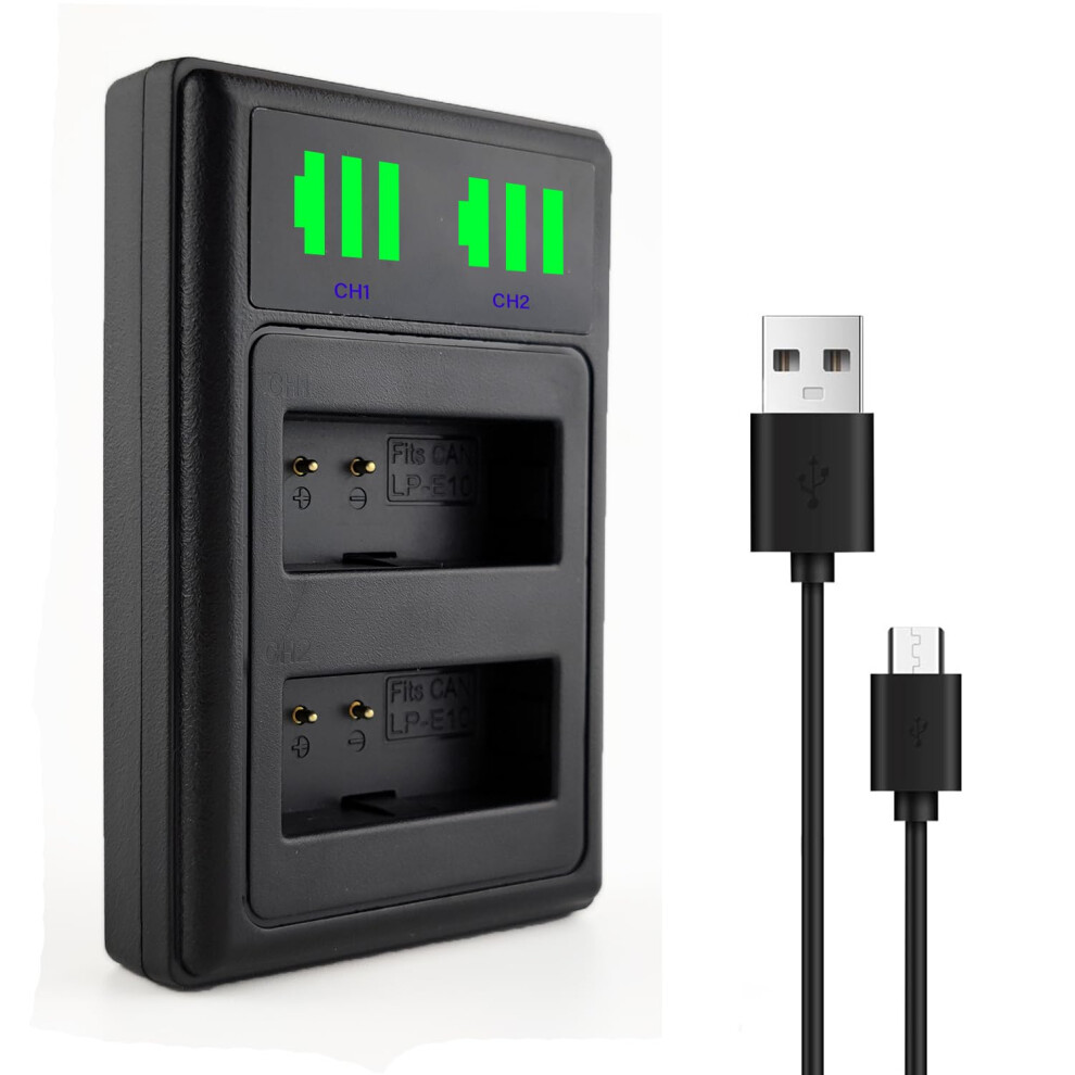 2x LP-E10 Battery & LED Smart Charger for Canon EOS Rebel T6 EOS 1300D EOS 1100D