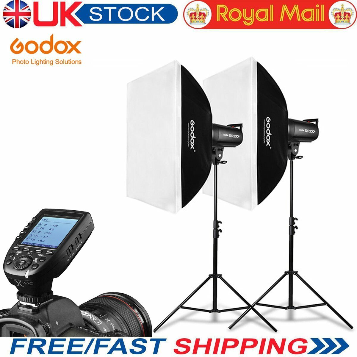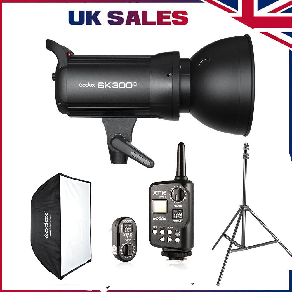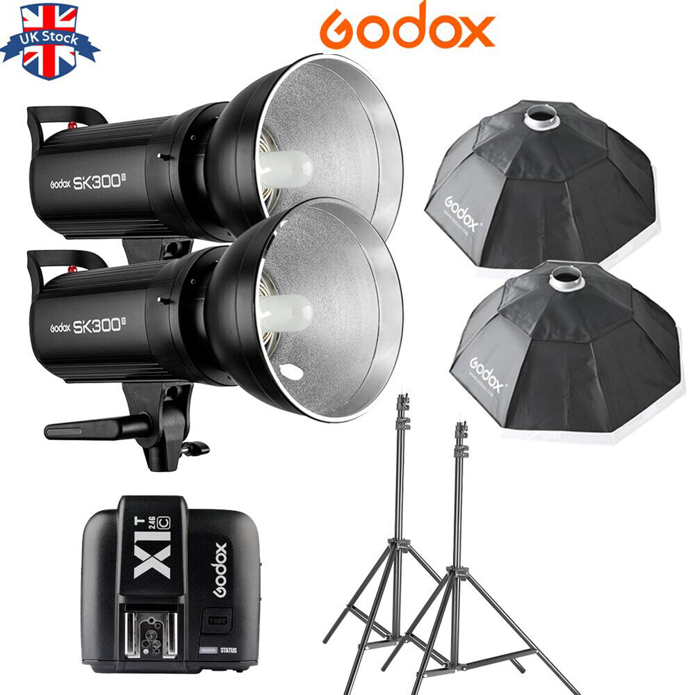 UK 2*Godox SK300II 300W 2.4G Flash+95cm FW softbox+light stand+X1T-C for Canon