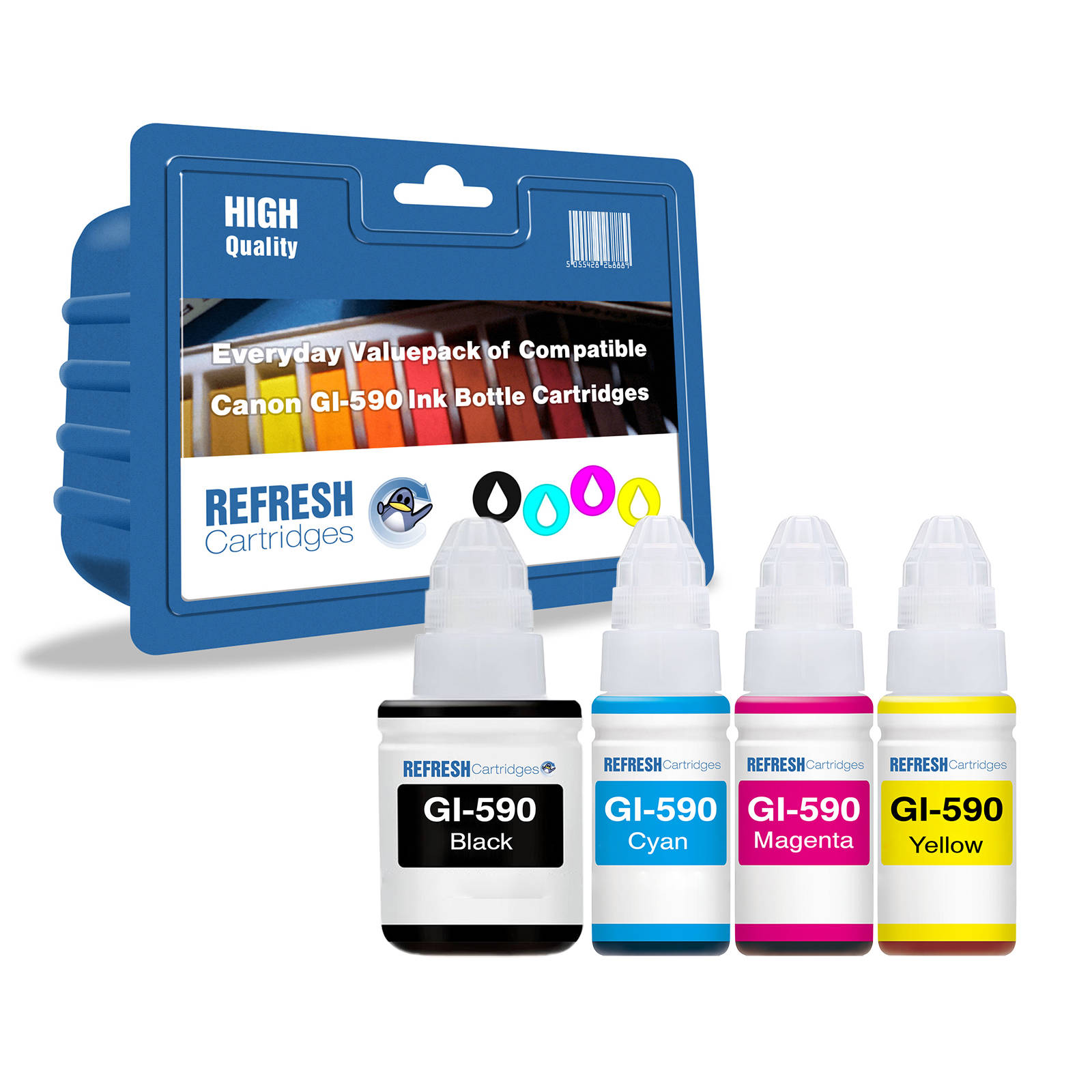Compatible Everyday Valuepack of GI-590BK, C, M & Y Replacement Ink Cartridges for Canon Printers