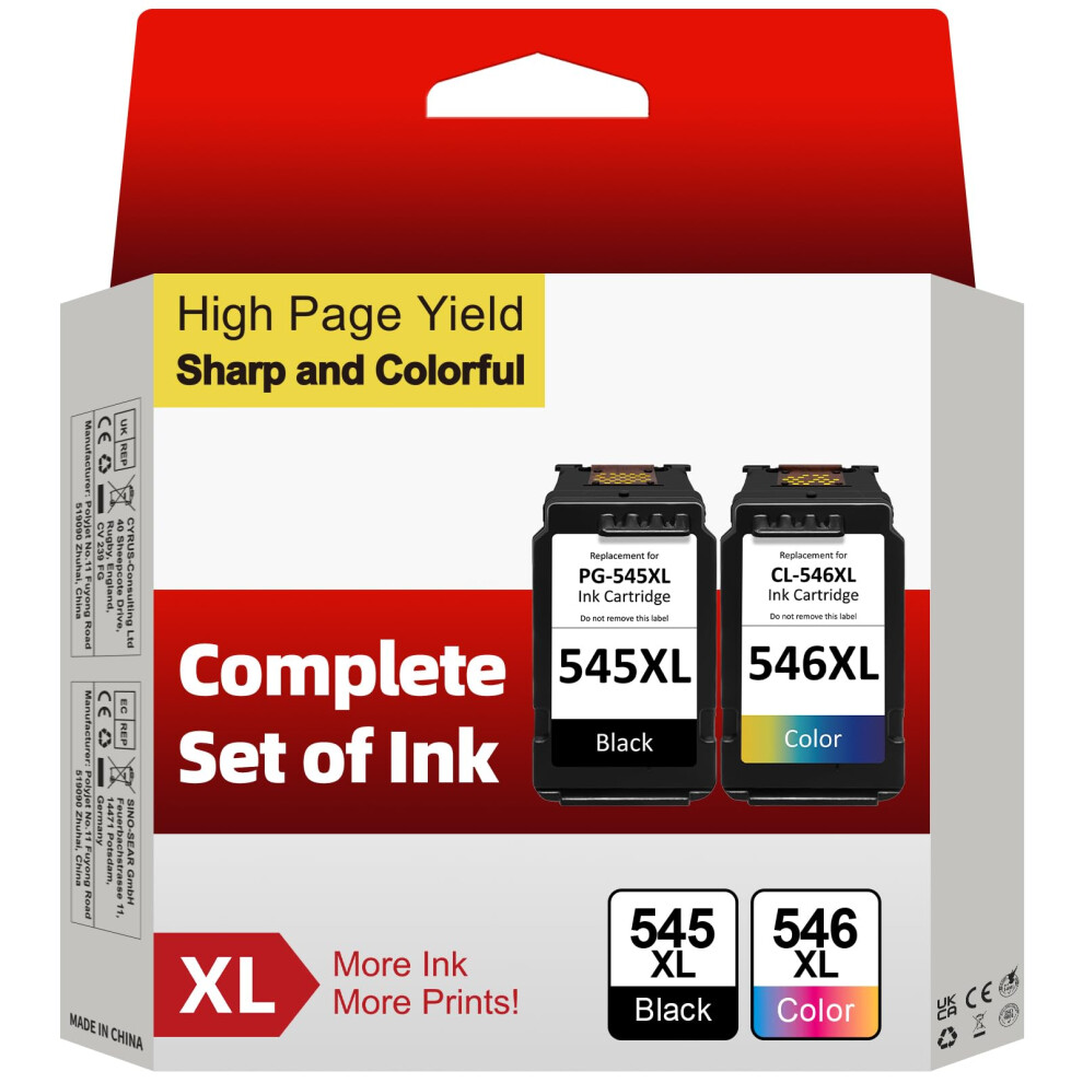 545XL 546XL Ink Cartridges Replacement for Canon Ink Cartridges 545 546 PG-545 CL-546 XL Black and Colour for Pixma TS3350 TS3150 MG3050 MG2550S MG2950 TR4550 TR4551 TR4650 MX495 TS3355 Printer