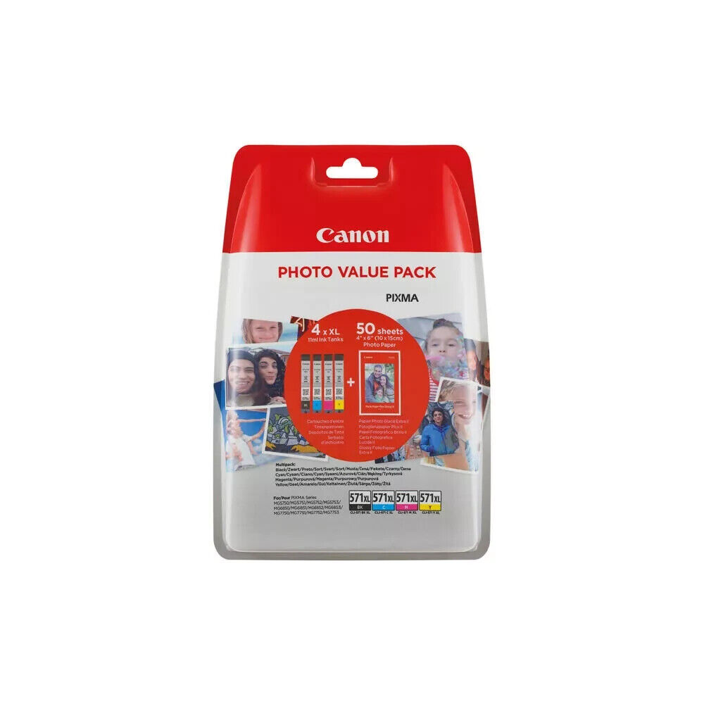 Canon CLI-571XL Inkjet Cartridges + 4x6 Photo Paper Glossy 50 Sheets Photo Value