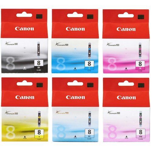 6 x Canon Original OEM Pixma (CLI-8B,C,M,Y,PC,PM) Inkjet Cartridges For iP6600D
