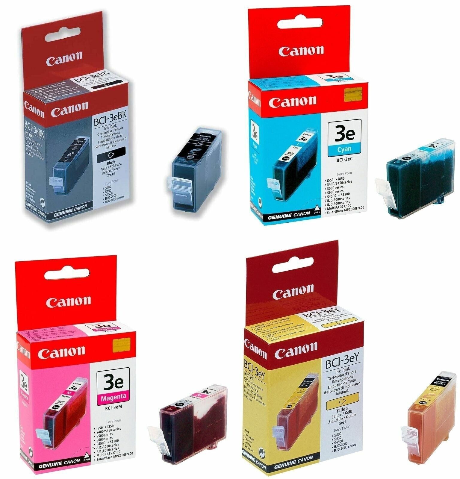 750 INKS *JOB LOT* GENUINE CANON BCI 3E BLACK CYAN YELLOW MAGENTA INKS - VAT INC