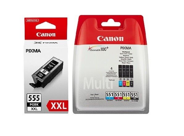 Genuine Canon PGI-555PGBKXXL / CLI-551 Black & Colour x 5 Inks for Pixma MX925