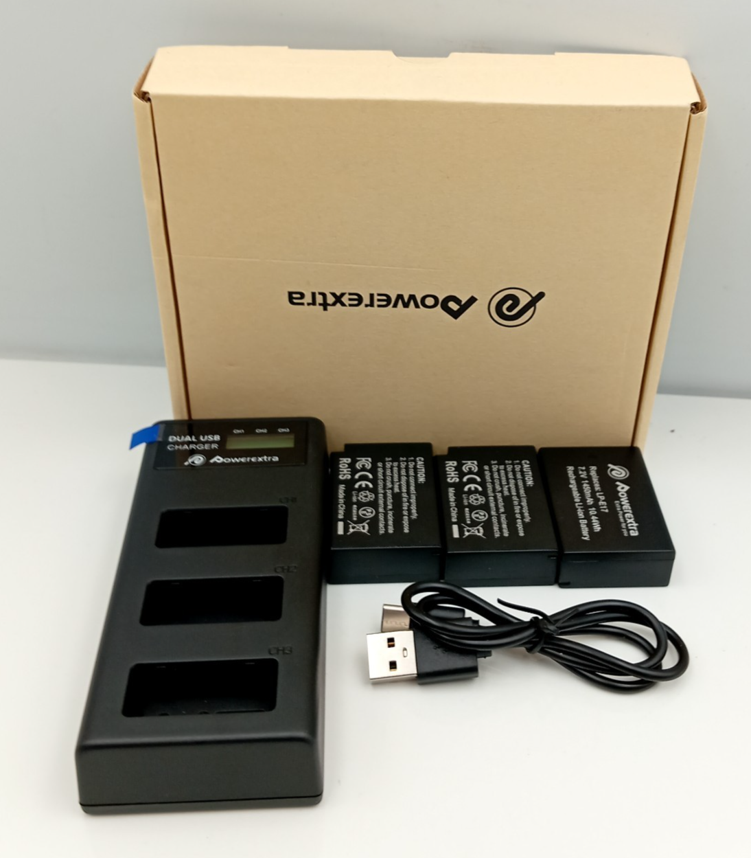 Powerextra LP-E17 Battery 3 Pack LCD Charger Canon EOS R50 R10 M50 1450mAh