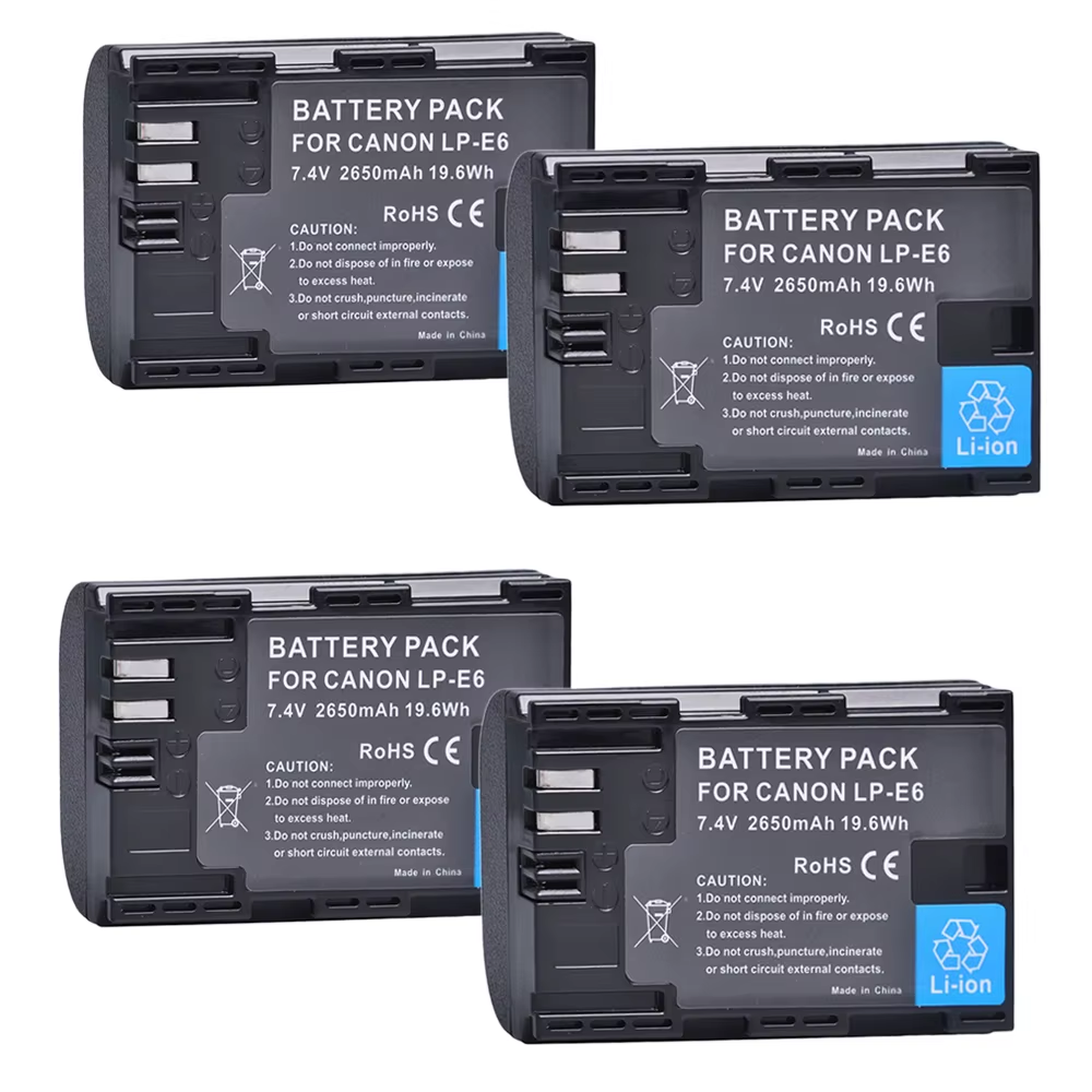 LP-E6 LP-E6N Battery & Charger Kit 2600mAh 2-Slot for Canon R7/R6/R5
