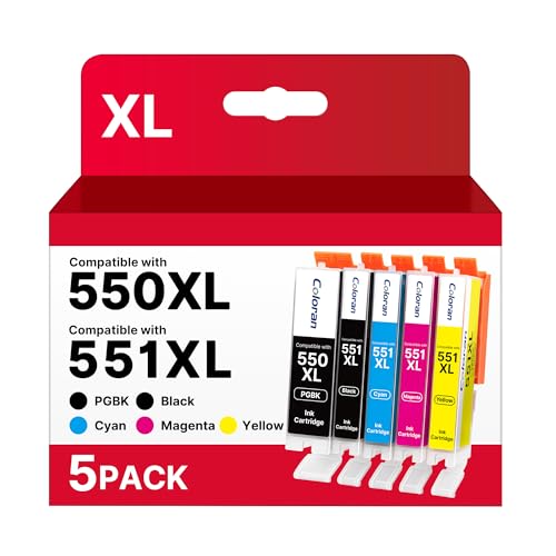 Coloran 550 551XL Replacement for Canon PGI-550 CLI-551 Ink Cartridges Compatible for Pixma iP7250 MG5650 MX925 MG5550 MG5450 iX6850 MG7500 Multifunction Wireless Inkjet Printer (PGBK/B/C/M/Y, 5-Pack)
