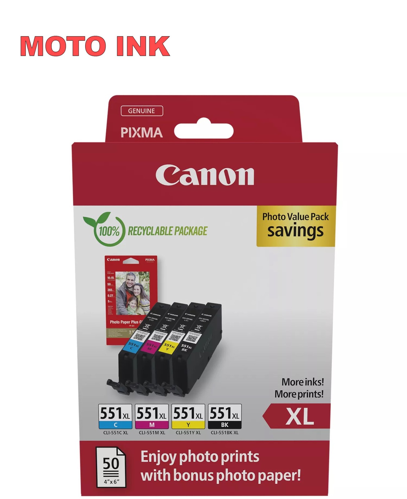 Canon CLI-551XL High Yield Genuine ink multi pack + paper for PIXMA MG5650