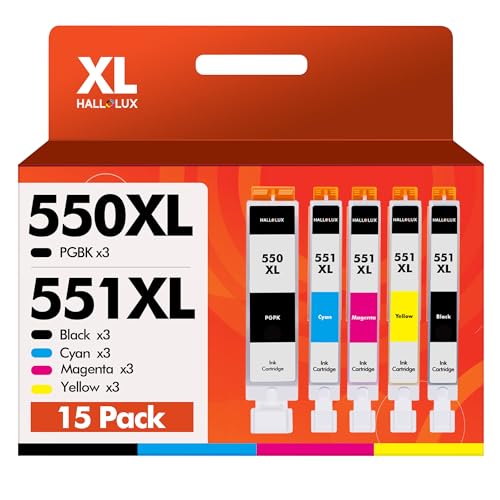 HALLOLUX 550XL 551XL Ink Cartridges High Yield Compatible for Canon PGI-550XL CLI-551XL Pixma MG7550 MG6350 iP7250 MG5650 MG7150 IX6850 MX925 MG7500 MG6450 MG6650 MX725 MX920(PG/B/M/Y/C,15-Pack)