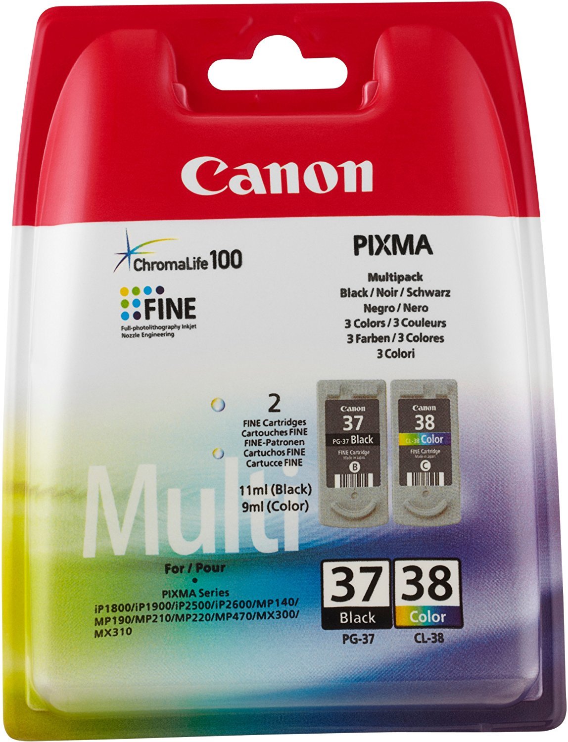Canon 2 PG-37 / CL-38 Original Printer Ink Cartridge - For use Pixma iP1800 iP1900 iP2500 IP2580 iP2600 MP140 MP190 MP210 MP220 MP470 MX300 MX310 -