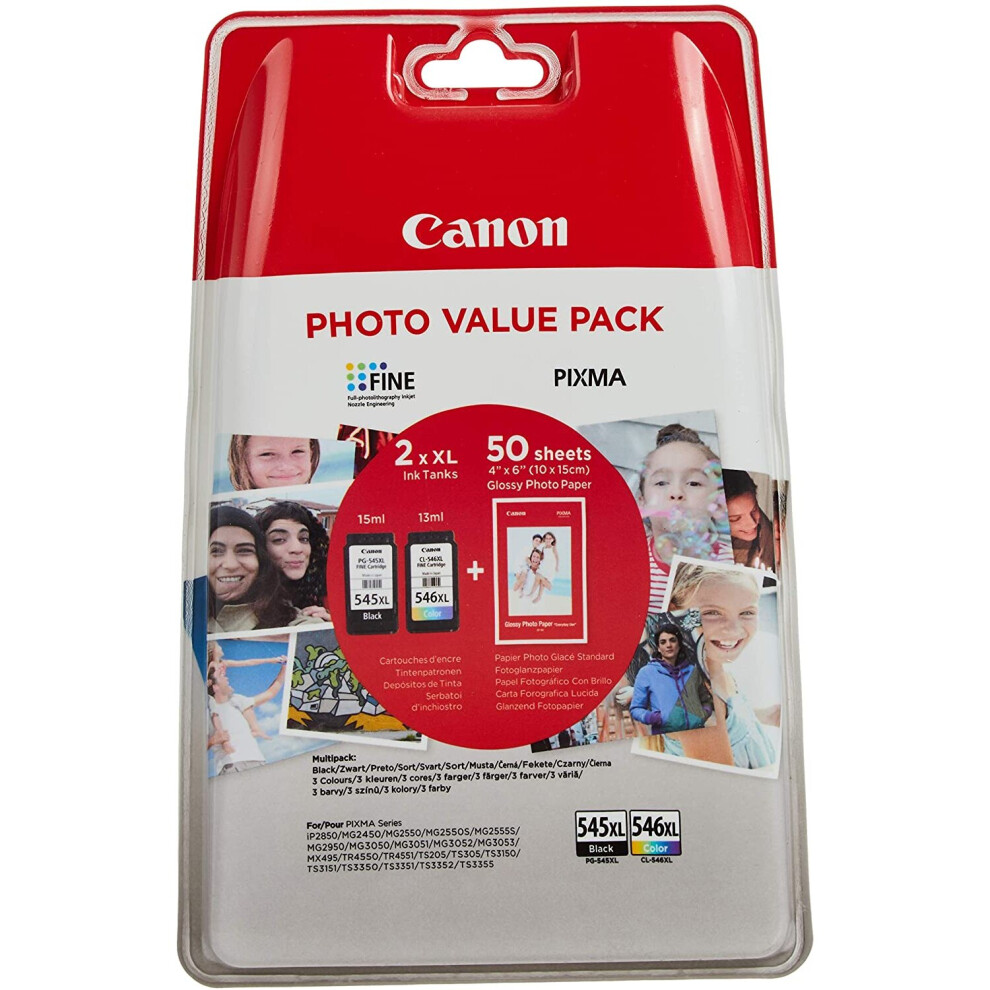 Canon PG-545XL Black Twin & CL-546XL Colour Ink Cartridge Photo Paper Value Combo Pack - 8286B015