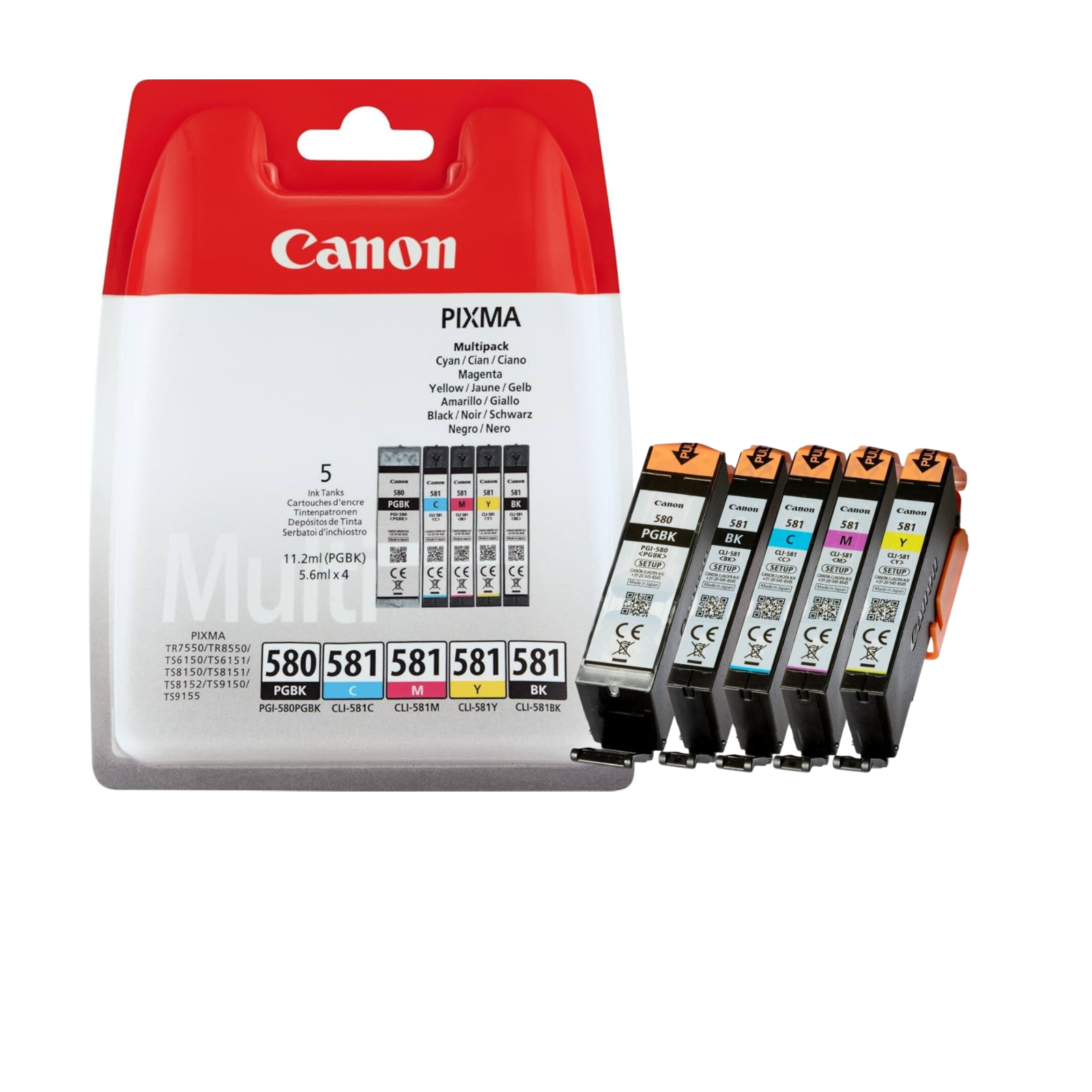 Canon PGI-580 CLI-581 BK C M Y PGBK Pack of 5 cartridges (Black Cyan Magenta Yellow Office Black Colour) Genuine (Recycled Cardboard Multipack)