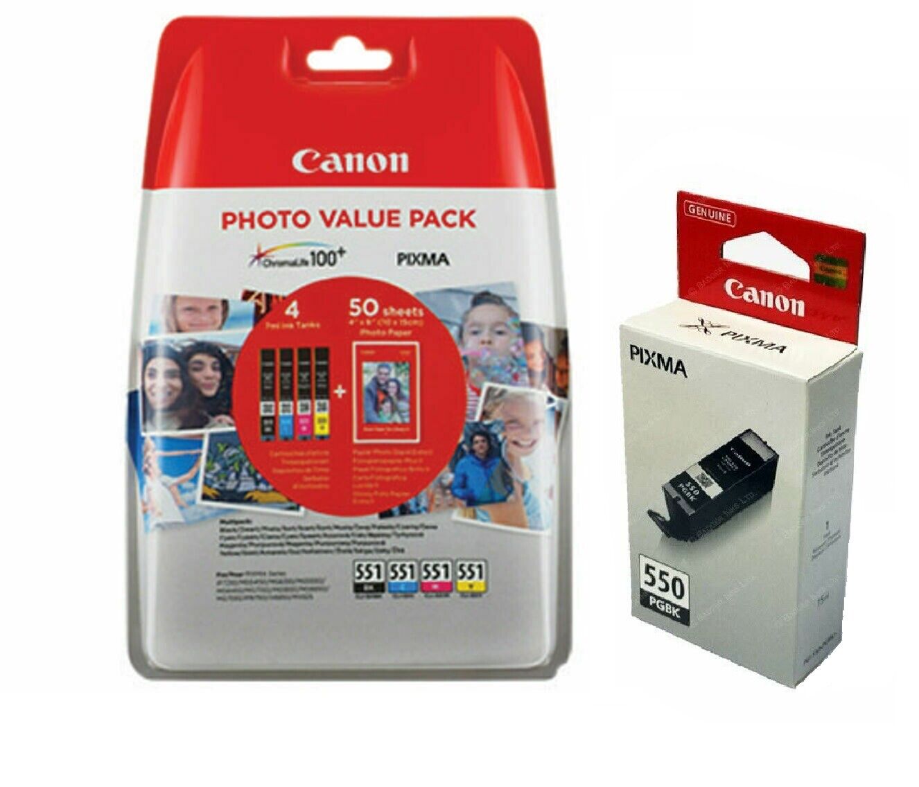 Genuine Canon PGI-550BK + CLI-551 CMYK Ink Cartridges +50 Pack Ph Paper MG5550
