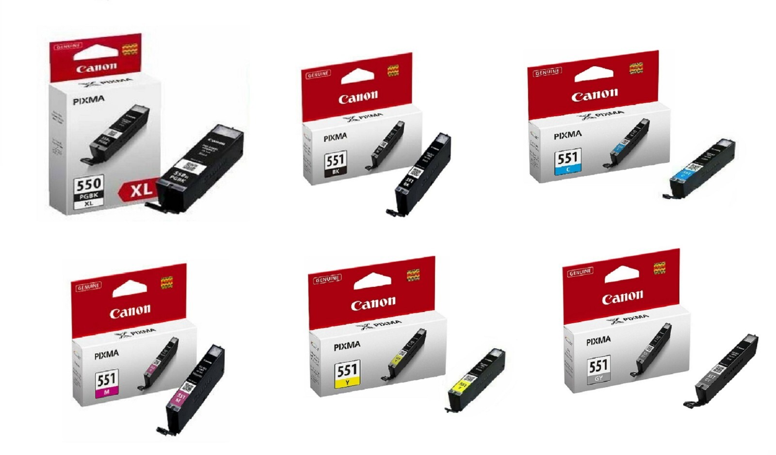 Canon CLI-551C/M/Y/BK/GY (5 Colours) + PGI-550PGBK (Pigment Black)