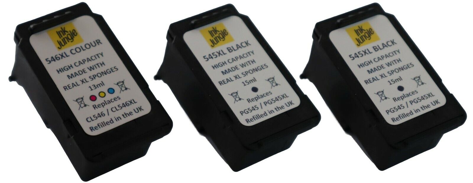 Ink Jungle PG-545XL Black & CL-546XL Colour Remanufactured Ink Cartridge For Canon PIXMA MG2450 MG2455 MG2550 MG2555 iP2850 iP2855 MG2950 MG2950S MG2955 MX495 MG2900 MG3051 MG3052 MG3053 MG2550S MG3050 TS3150 Inkjet Printers