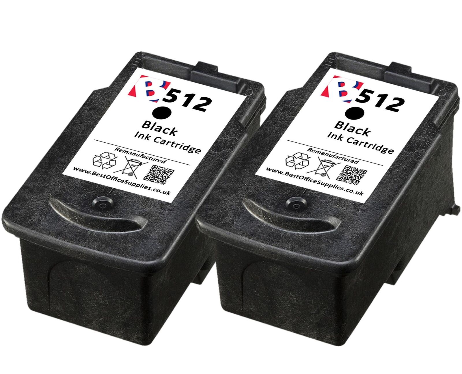 2 x Refilled PG 512 Black Ink Cartridge fits Canon Pixma MP 492 Printer