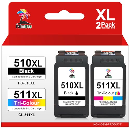 Palmtree PG-510 CL-511 Remanufactured Ink Cartridges - Replacement for Canon MP495, MP499, Pixma iP2702, MP230, MP235, MP280 (1 Black, 1 Tri-Color)