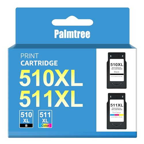 PalmTree PG-510 CL-511 Remanufactured for Canon 510XL and 511XL ink cartridges Replacement for Canon MP495 ink cartridges for Canon MP499 ink for Pixma iP2702 MP230 MP235 MP280 (1 Black 1 Tri-Color)