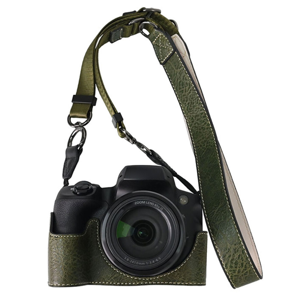 (Green) For Canon SX70 HS Camera Case with Shoulder Strap Large Cutout Litchi Texture PU Protective Cover