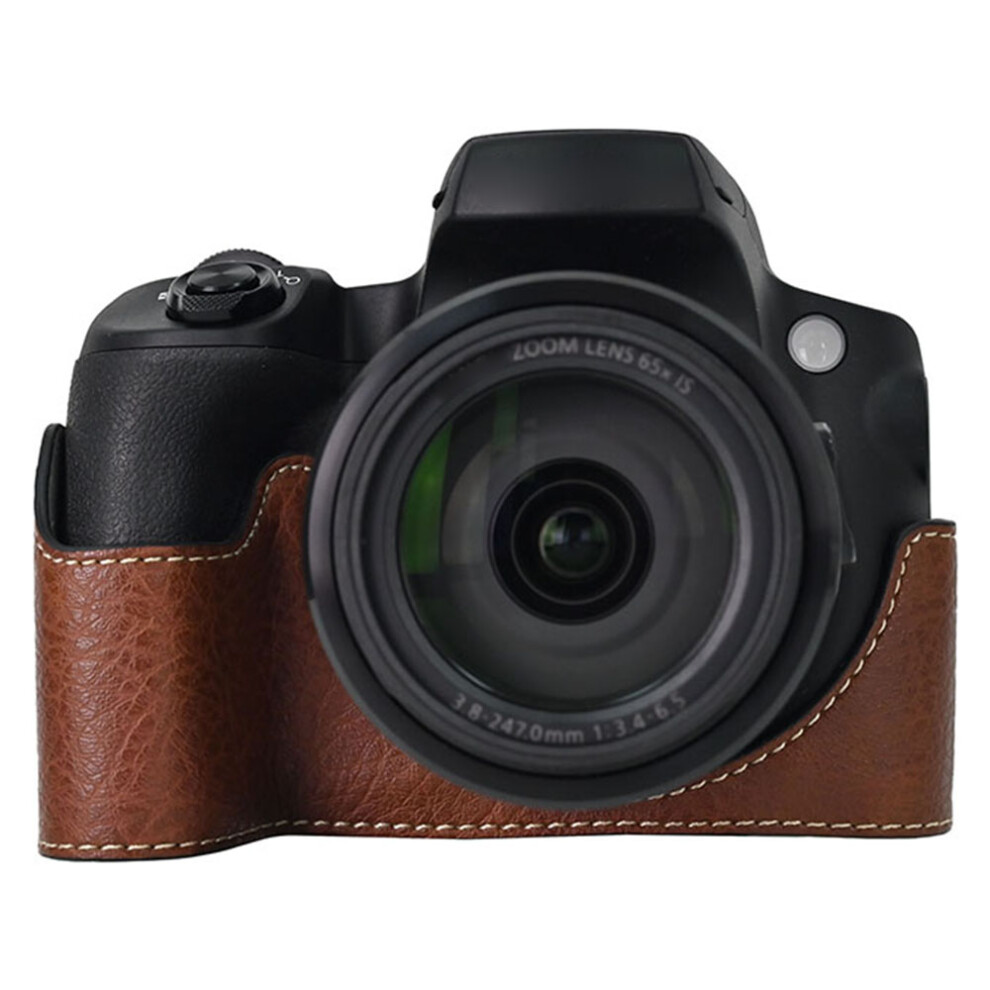(Coffee) For Canon SX70 HS Camera Case Large Cutout Litchi Texture PU Leather Protective Cover