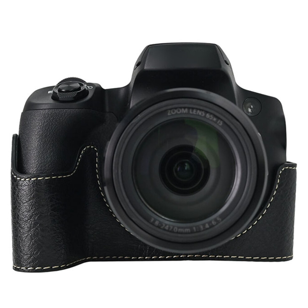 (Black) For Canon SX70 HS Camera Case Large Cutout Litchi Texture PU Leather Protective Cover