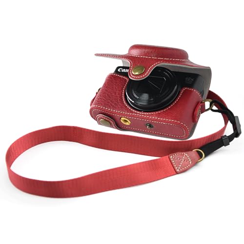 BEADY Camera Case for Canon PowerShot SX740 HS SX730 HS SX720 HS Camera Cover Case PU Leather PowerShot sx720hs SX730hs SX740hs Protective Cover Shoulder Strap Red