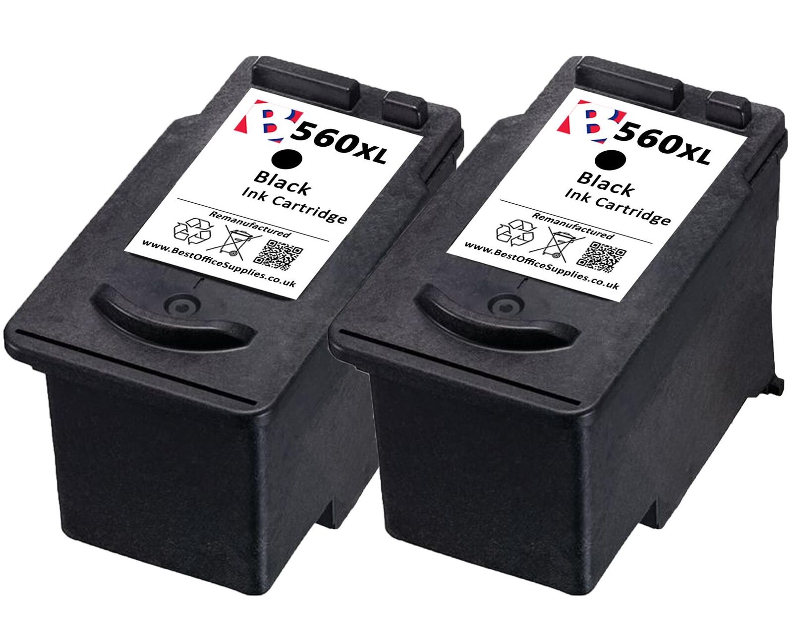 2 x Refilled PG-560 XL Black Ink Cartridge For Canon Pixma TS7450 Printer