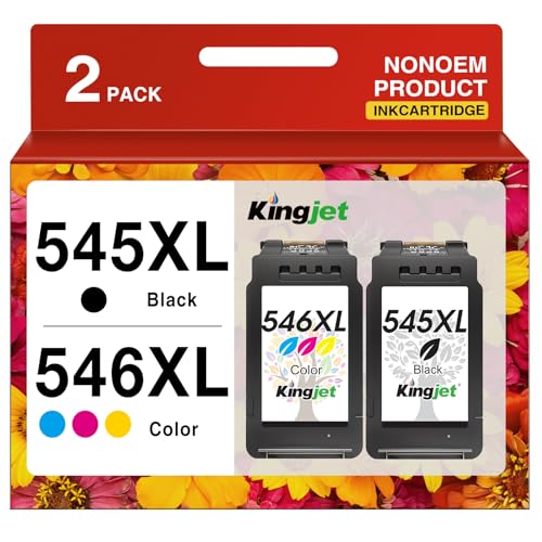 KINGJET 545XL 546XL Ink Cartridges Remanufactured for Canon 545 546 PG-545 CL-546 XL Black and Colour for Pixma TS3350 TS3150 MG3050 MG2550S MG2950 TR4550 TR4551 TR4650 MX495 TS3355