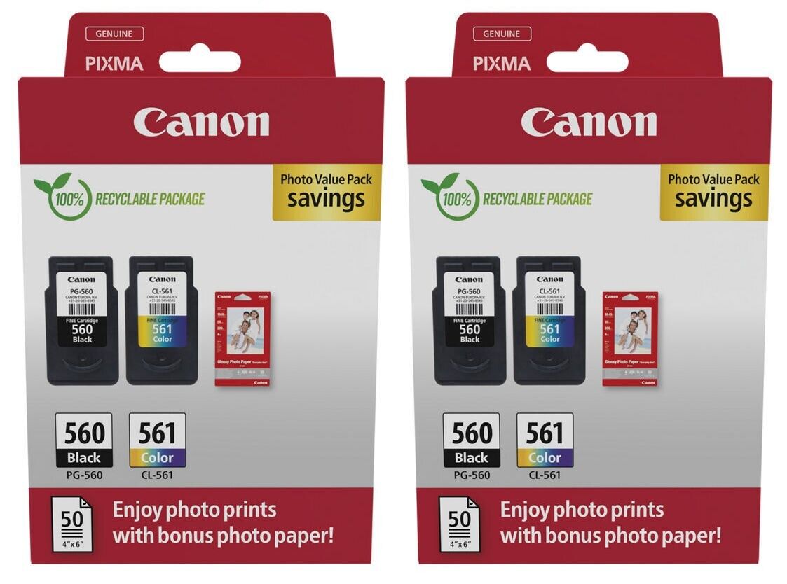 2x Canon PG560 Black & CL561 Colour Ink Cartridge Photo Value Packs For TS5351