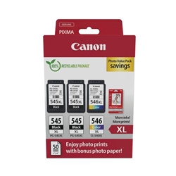 Canon PG-545 XL CL-546 XL VALUE SEC Pack of 2 cartridges (Black XL Colour XL) + 50 sheets of 10x15cm Photo Paper Genuine (Recycled Cardboard Multipack)